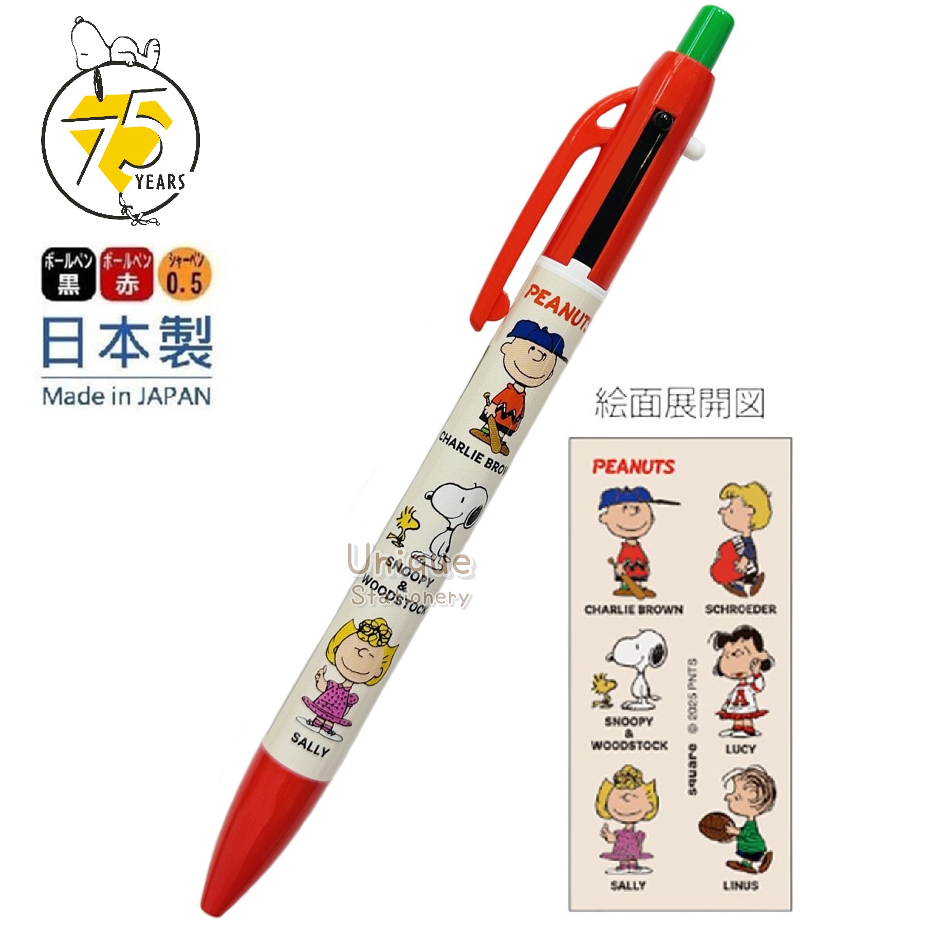 現貨|Snoopy 75週年限定 日本製 3用筆 (2色原子筆+鉛芯筆) PA25-20
