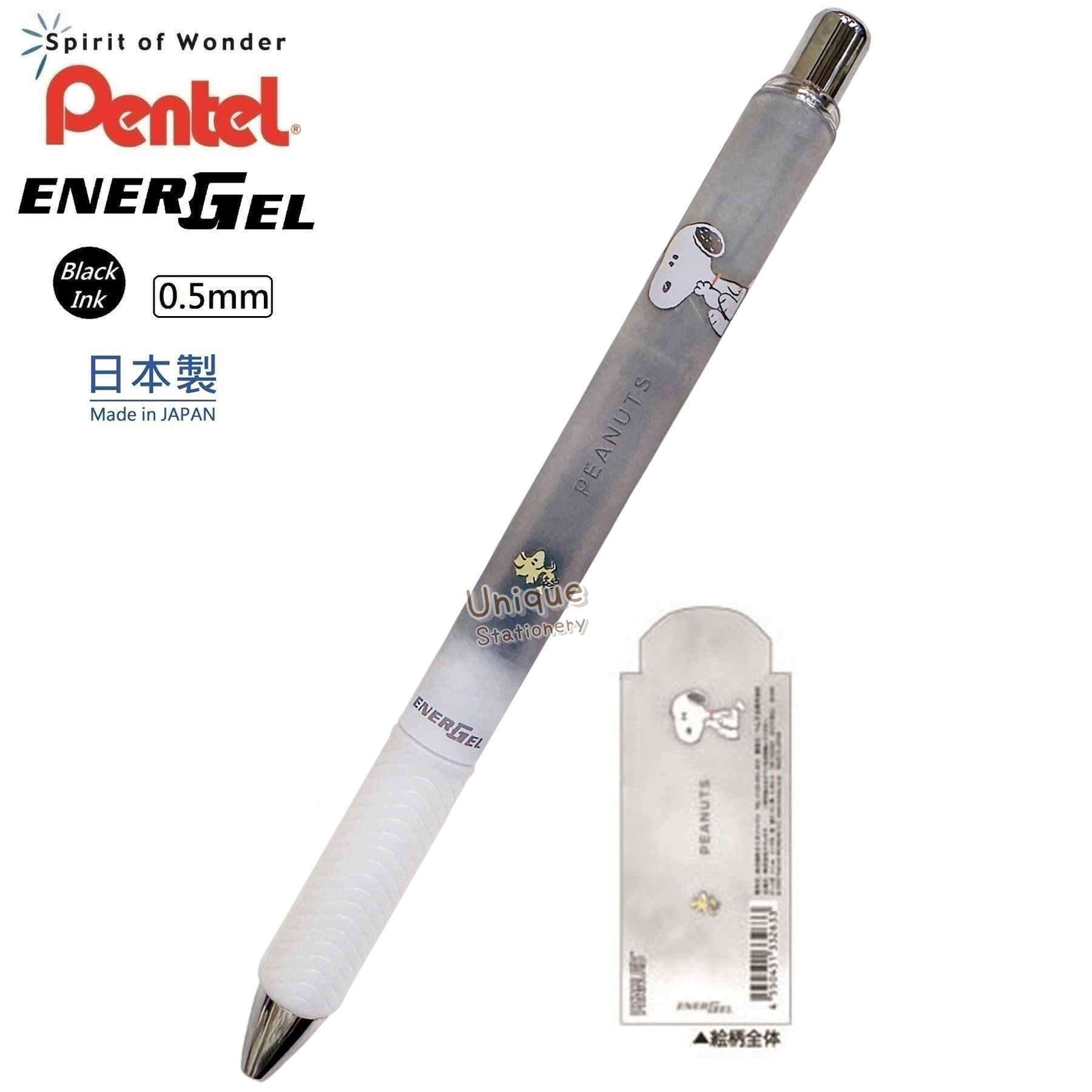 現貨|Snoopy 日本製 Pentel EnerGel 0.5mm 黑色 啫喱筆 (CR130641)