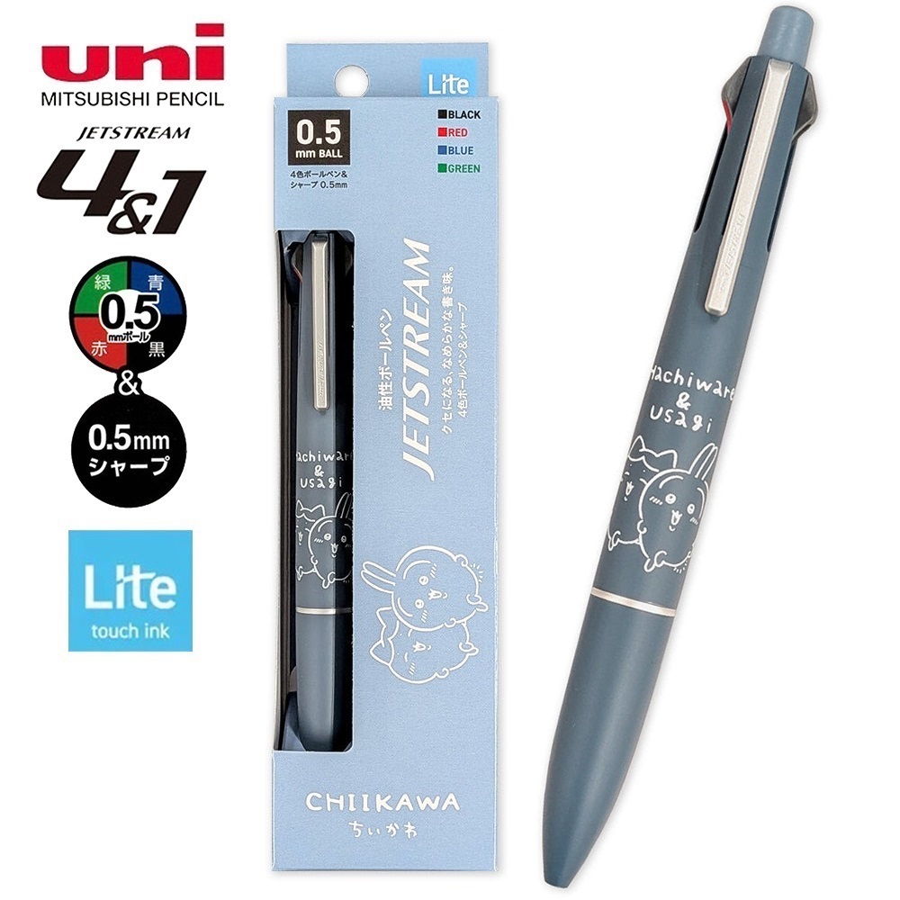 現貨|Chiikawa ちいかわ 日本製 uni Jetstream Lite Touch Ink 4&1 多功能 5用筆 0.5mm 4色原子筆 + 0.5mm 鉛芯筆 (Hachiware 小八 Usagi 兔兔 229005)