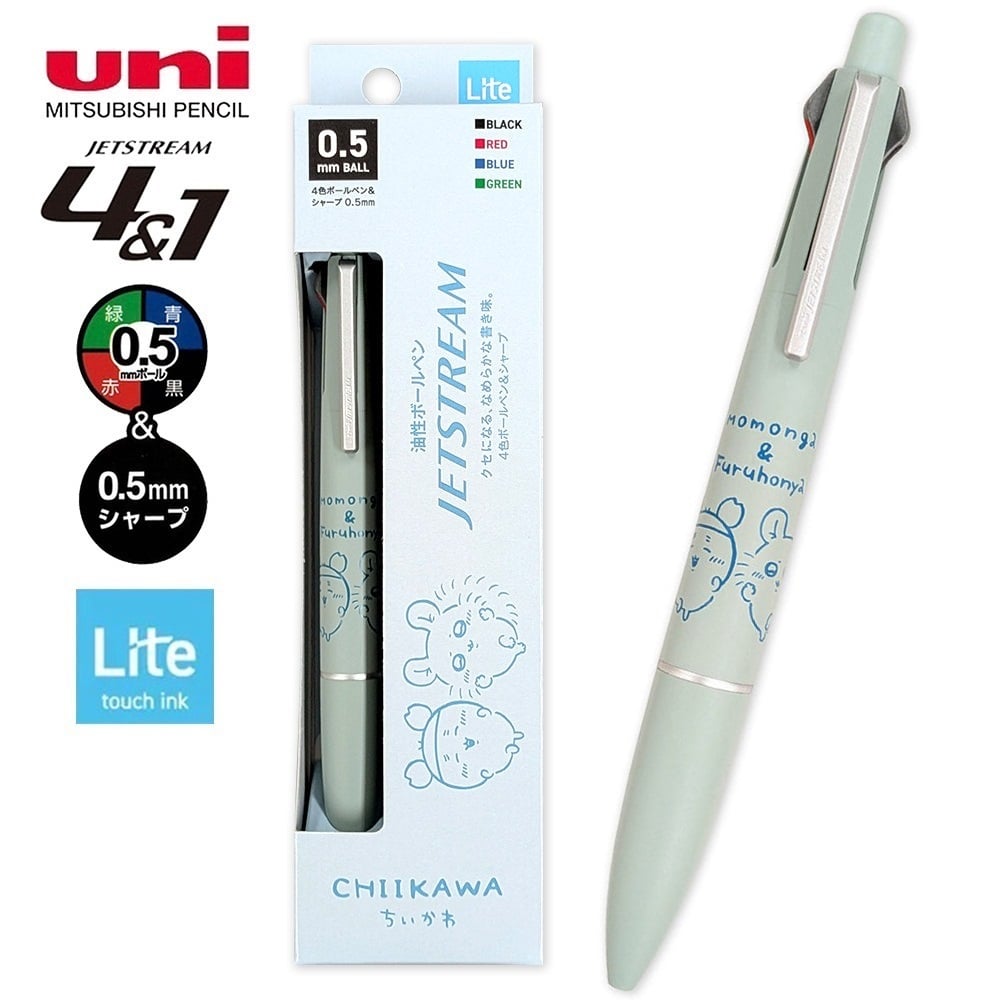 現貨|Chiikawa ちいかわ 日本製 uni Jetstream Lite Touch Ink 4&1 多功能 5用筆 0.5mm 4色原子筆 + 0.5mm 鉛芯筆 (飛鼠 Momonga & 古本屋 229006)