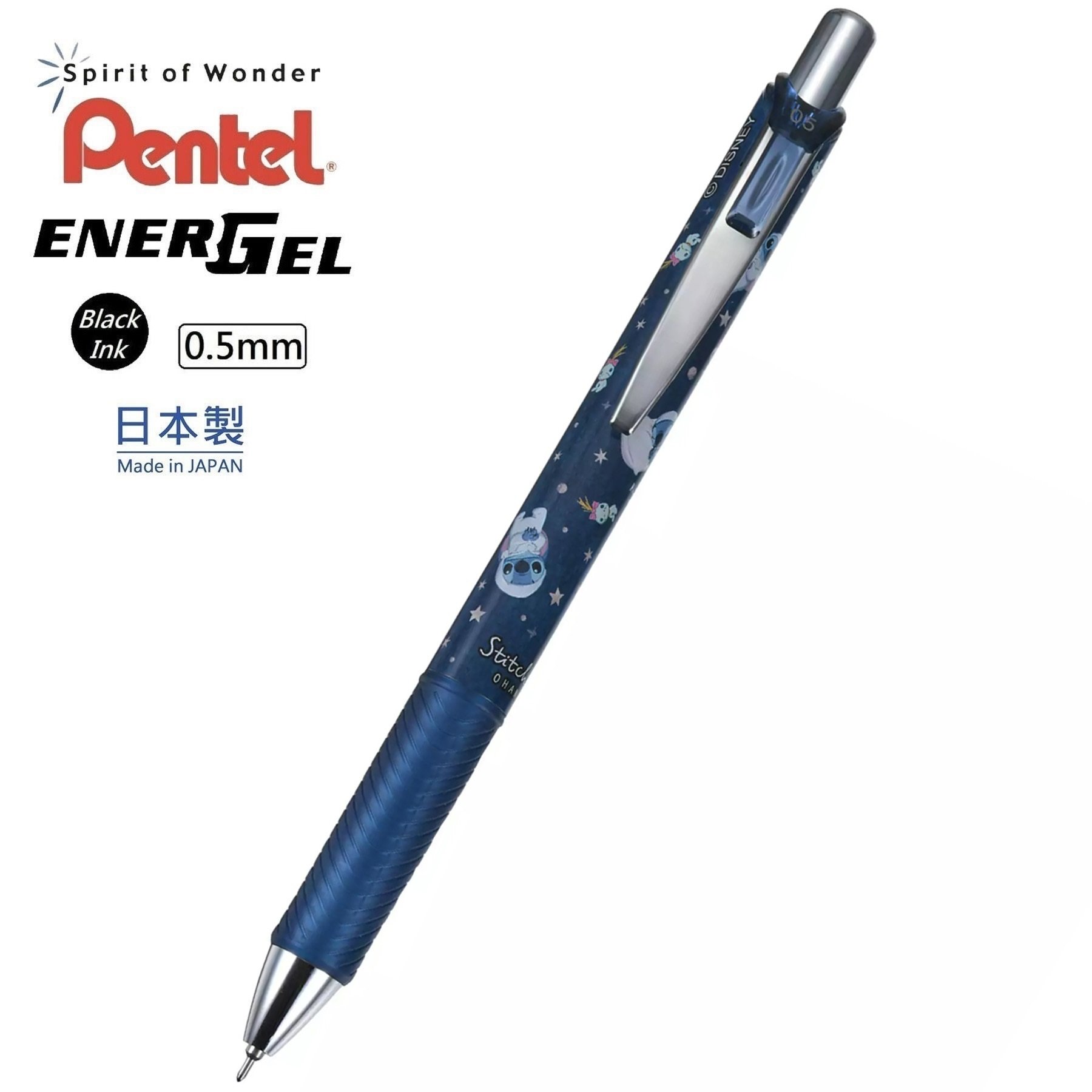 【日本 Disney Store 限定】Stitch 史迪仔 日本製 Pentel EnerGel 0.5mm 黑色 啫喱筆 690059 墨水顏色:0.5mm 黑色 尺寸:148mm (長) x 11mm (值徑) 材質:ABS 重量:約12.6g 日本進口,日本製造 Made in Japan