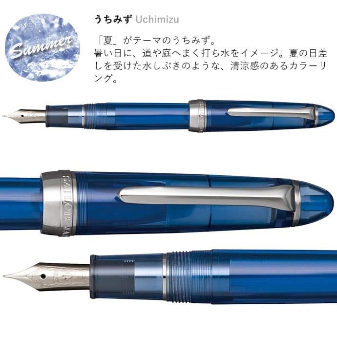日本 Sailor 寫樂 SHIORIORI 四季織 鋼筆 墨水筆 万年筆 F細字 (夏 11-0500-242) 商品詳細: ▪️ 筆尖:F 細字 ▪️ 筆尖表面處理:鍍鎳鉻不鏽鋼 ▪️ 筆身/筆蓋:PMMA樹脂 ▪️ 筆尺寸:134mm (長度包括筆蓋) x 17mm (直徑) ▪️ 筆重量:約 17.8g ▪️ 方法:可墨膽/吸墨器兩用型 ▪️ 附件:黑色墨膽2枝 (不包含吸墨器)、禮盒、說明書,品質保証書