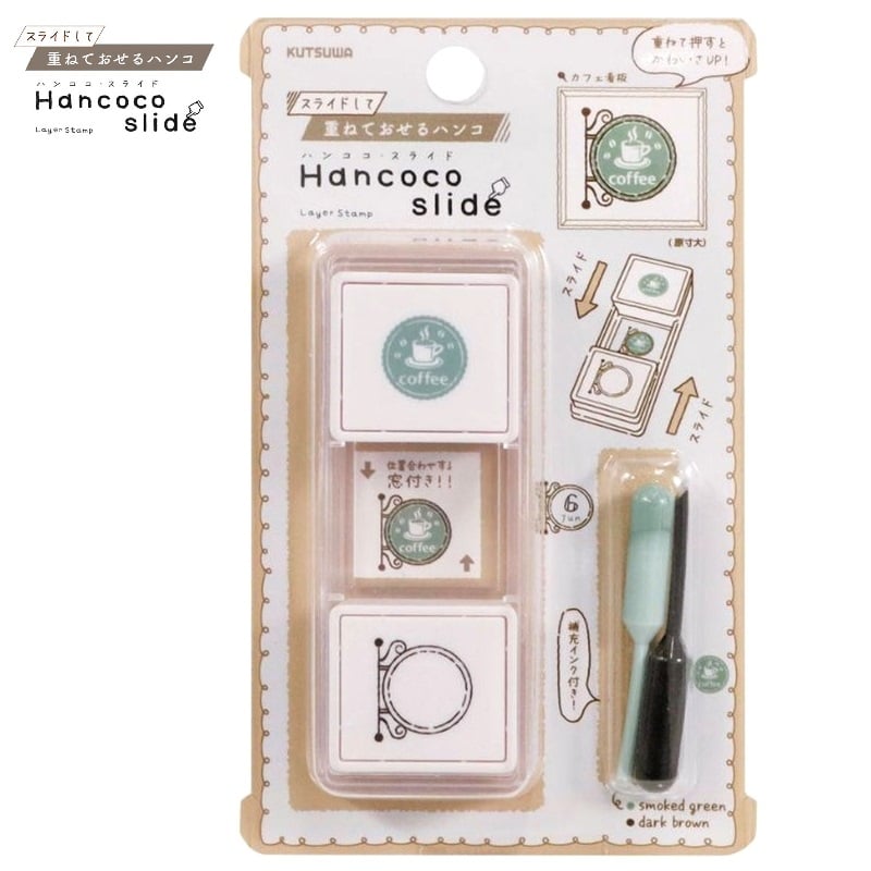 現貨|Kutsuwa 日版 Hancoco slide 可堆疊 雙色雙圖案 印章 (咖啡館招牌 DE018F)
