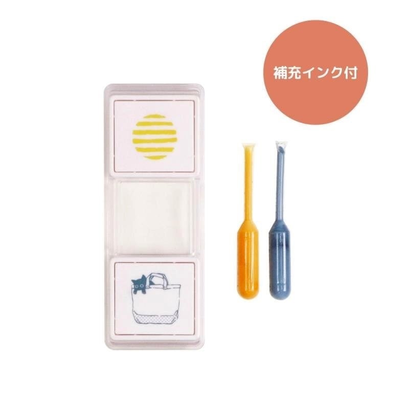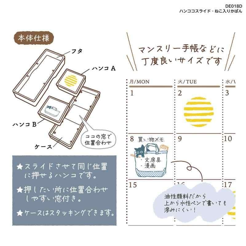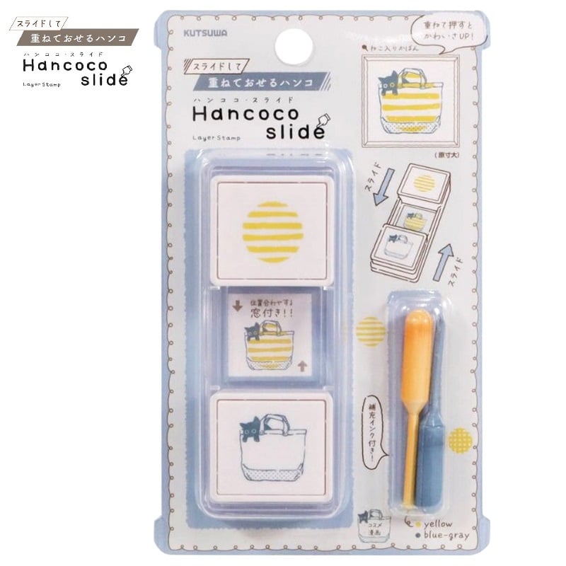 現貨|Kutsuwa 日版 Hancoco slide 可堆疊 雙色雙圖案 印章 (貓咪包包 DE018D)