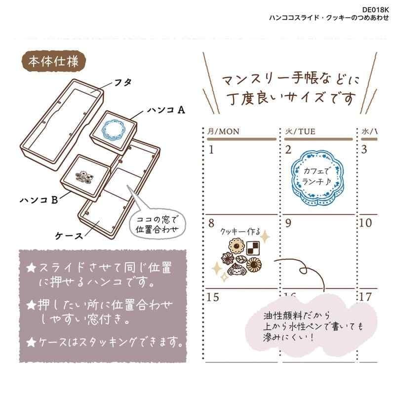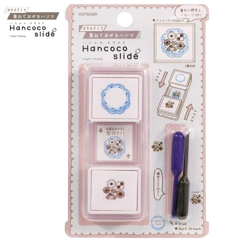 現貨|Kutsuwa 日版 Hancoco slide 可堆疊 雙色雙圖案 印章 (什錦餅乾 DE018K)