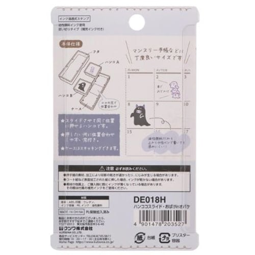 Kutsuwa 日版 Hancoco slide 可堆疊 雙色雙圖案 印章 (鬼中鬼 DE018H) ▪️ 這是一種可以將 2 種顏色和 2 種圖案的印章堆疊在同一位置的印章。 ▪️ 全新設計,方便您滑動疊印印章。 ▪️ 對準視窗方便您輕鬆蓋印在所需位置,尺寸完美適用於每月計畫本和自由日記本。 ▪️ 每個印章可以單獨使用,或可配合其他款的印章自由創作。 ▪️ 水性墨水防暈染,易於排列,為您的計畫本增添趣味。 ▪️ 它是滲透性印章,無需墨水即可立即印章! ▪️ 附2枝補充墨水。 印章尺寸:約 H25 x W28 x D12mm 包裝尺寸:約 H130 x W80 x D16mm 材質:ABS (主體)、聚氨酯 (印章)、PE (墨水容器) 連包裝重量:約 32g 日本進口 Made in China