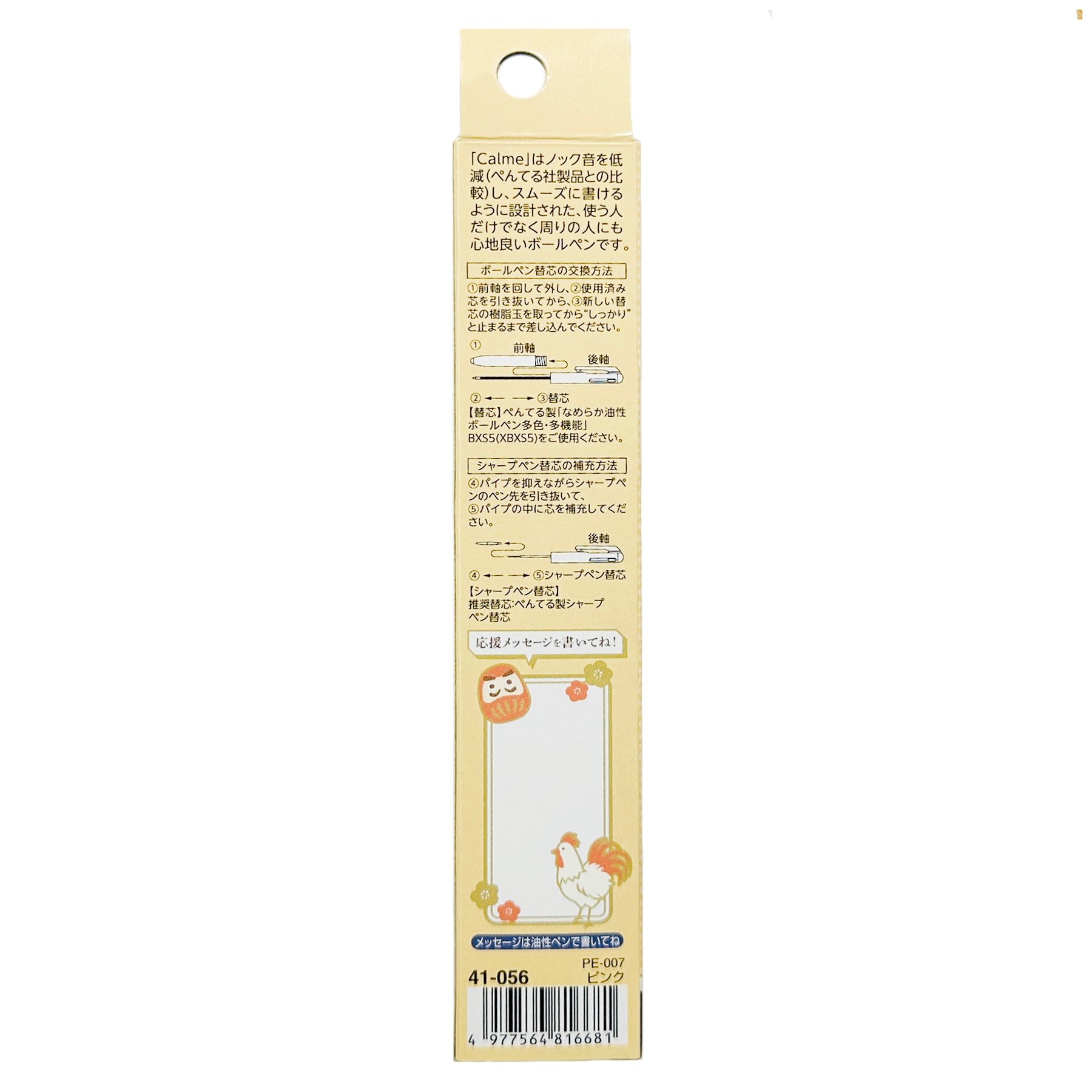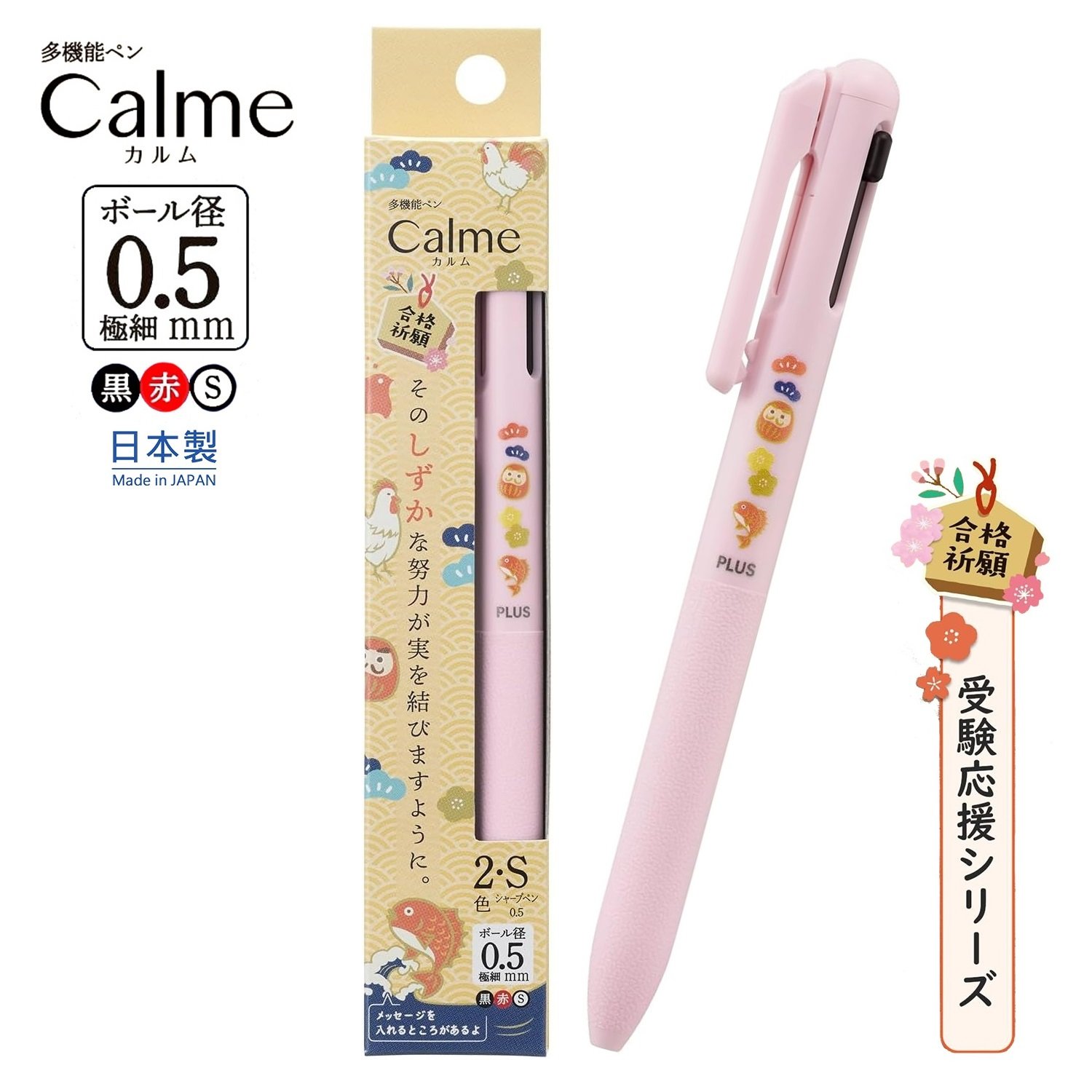 Plus Calme 合格祈願 考試應援系列 達摩 鯛魚 日本製 3用筆 (2色原子筆+鉛芯筆) 41-056 ▪️ 這款限量版 Calme 筆是一款多功能筆,結合了鉛芯筆和原子筆的功能 (紅黑兩色)。 ▪️ 設計融入了吉祥圖案,表達對考生的祝福。 ▪️ 靜音設計,有效降低書寫噪音,是學習環境的理想選擇。 ▪️ 筆握採用仿皮材質,握感舒適貼合。 ▪️ 採用色彩濃鬱、油性滑順的墨水,不易結塊,書寫後不易暈染。 ▪️ 包裝盒內設有留言空間,方便您寫下祝福語。 原子筆墨水顏色:0.5mm 黑色、紅色 鉛芯筆:0.5mm 尺寸: 約 146mm (長) x 11.5mm (直徑) 材質:PP、PC、POM、彈性體 筆重量:約 12g 連包裝重量:約 19g 日本直送,日本製造 Made in Japan