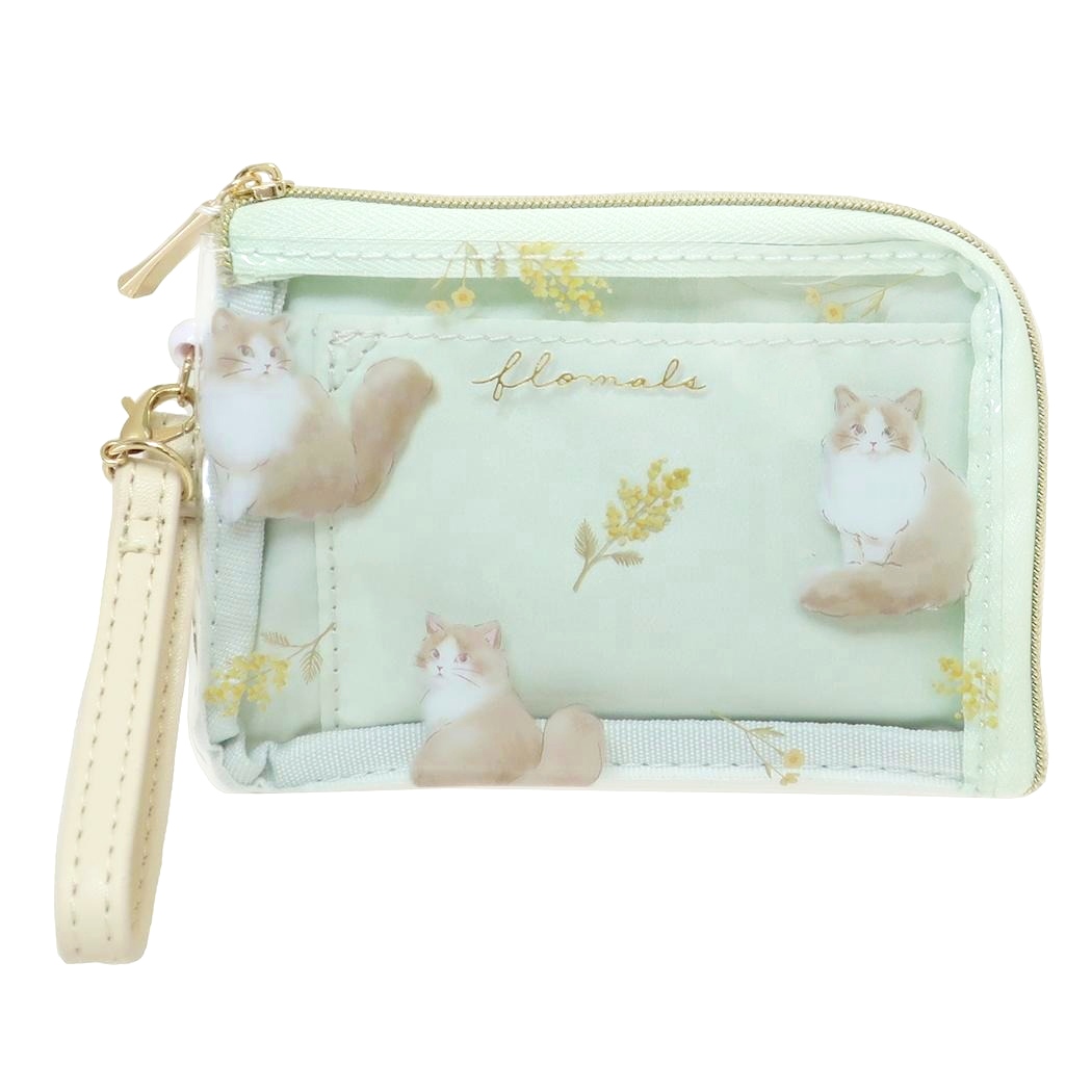 日本 Q-LiA flomals 貓貓 伸縮帶 卡套 / 散紙包 小袋 (淺綠色 89662)