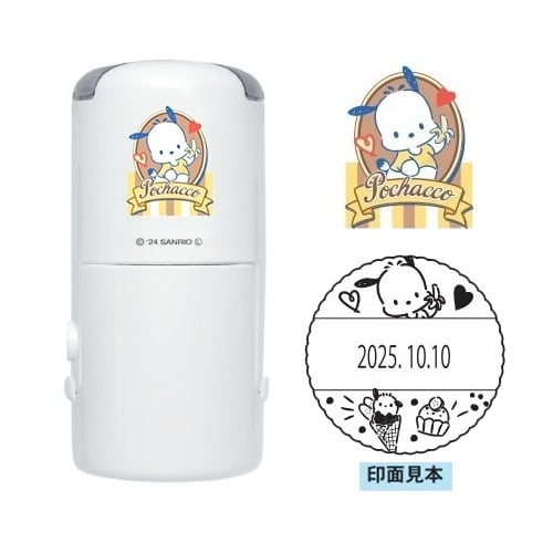 Sanrio Pochacco PC狗 日本製 旋轉 日付印 日期印章 (TSK-33759) 內有墨水的日期印章,無需印台即可連續印章 印章尺寸:約 直徑 40 x H80mm 印面尺寸:約 直徑 21mm 墨水顏色:黑色 材質:ABS樹脂 連包裝盒重量:約 54.3g 日本進口,日本製造 Made in Japan