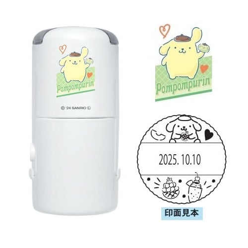 Sanrio Pompompurin 布甸狗 日本製 旋轉 日付印 日期印章 (TSK-33766) 內有墨水的日期印章,無需印台即可連續印章 印章尺寸:約 直徑 40 x H80mm 印面尺寸:約 直徑 21mm 墨水顏色:黑色 材質:ABS樹脂 連包裝盒重量:約 54.3g 日本進口,日本製造 Made in Japan