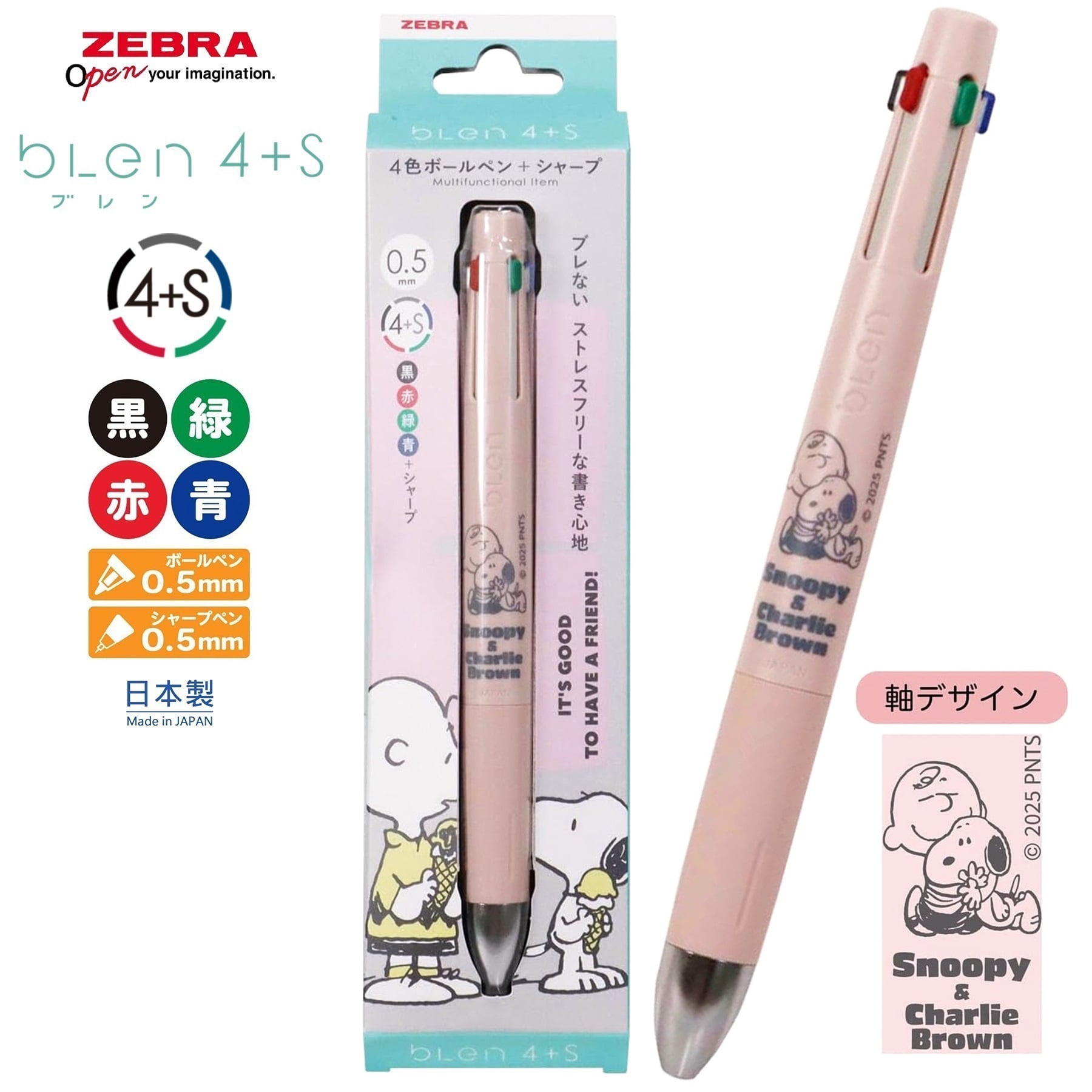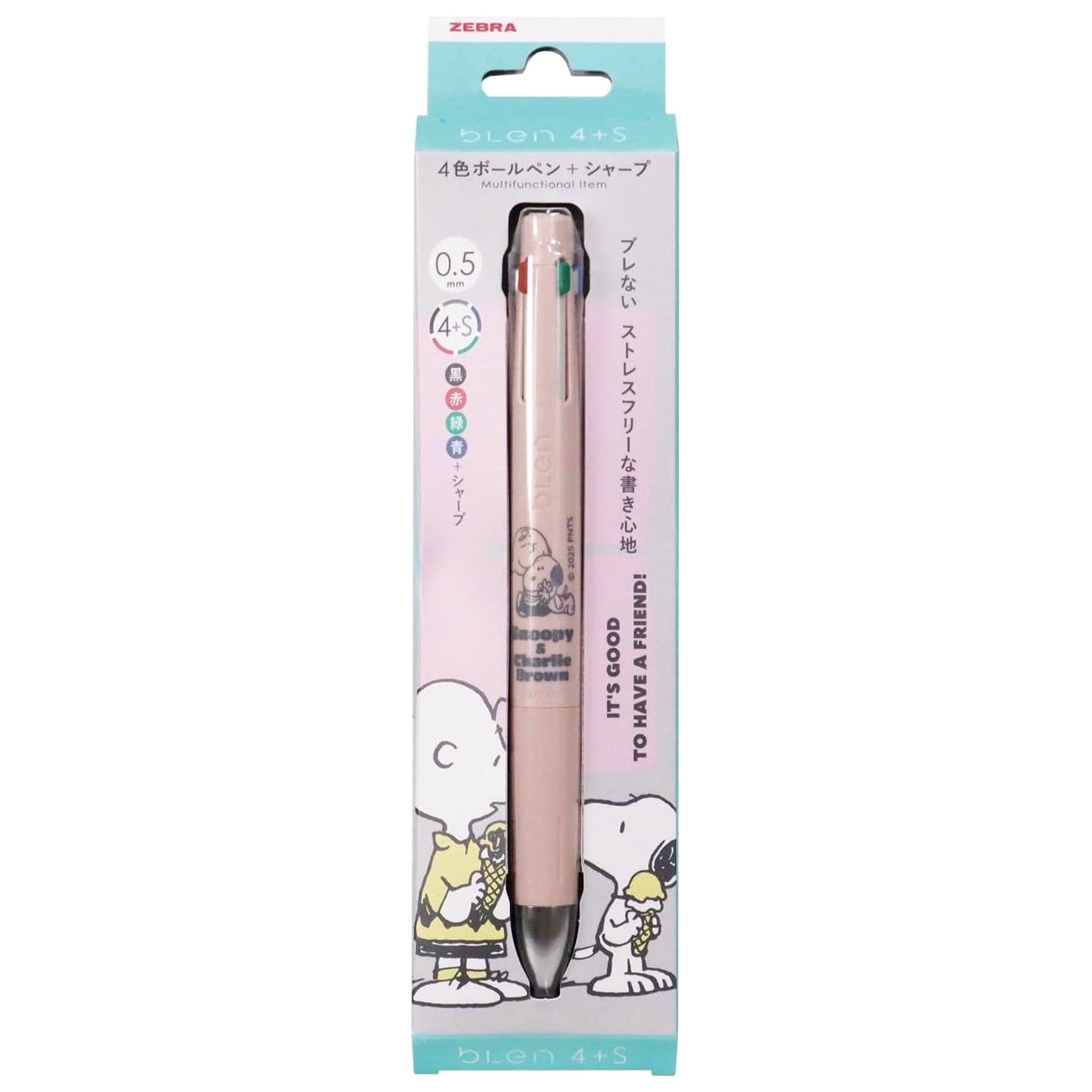 現貨|Snoopy & Charlie Brown 日本製 Zebra bLen 4+S 低震 多功能 5用筆 (4色原子筆 + 鉛芯筆) ES538SP