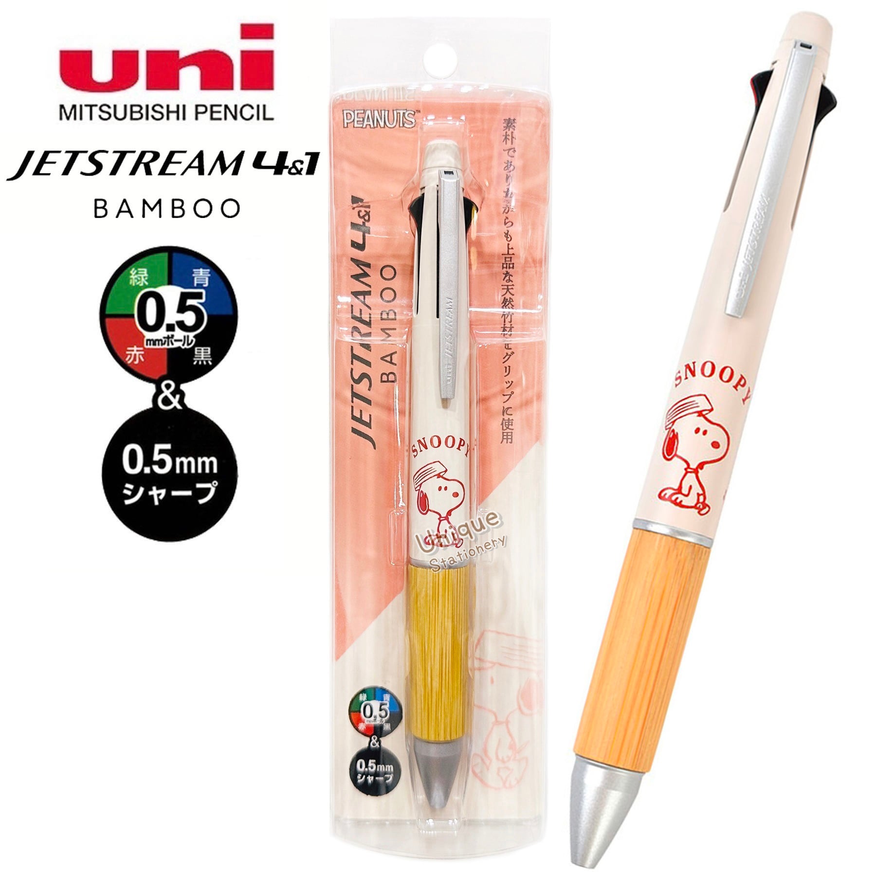 現貨|Snoopy 日本製 uni Jetstream 4&1 Bamboo 多功能 5用筆 0.5mm 4色原子筆 + 0.5mm 鉛芯筆 (305721)