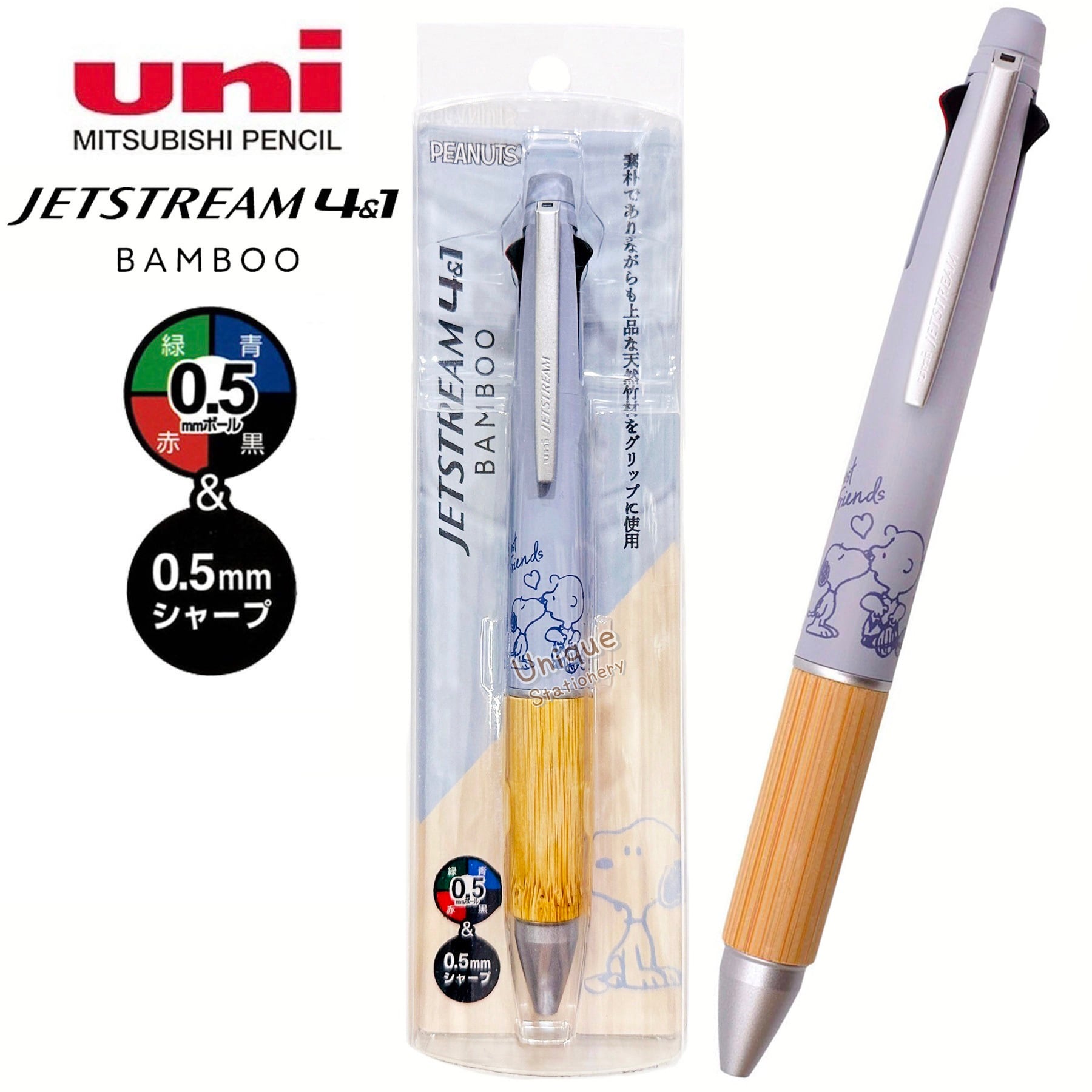Snoopy 日本製 uni Jetstream 4&1 Bamboo 多功能 5用筆 0.5mm 4色原子筆 + 0.5mm 鉛芯筆 (304483) 墨水顏色:0.5mm 黑色,紅色,藍色,綠色 鉛芯筆:0.5mm 尺寸: 149m (長) x 14mm (直徑) 材質:ABS樹脂、竹子、黃銅、鋼 連包裝重量:約 39g 日本直送,日本製造 Made in Japan