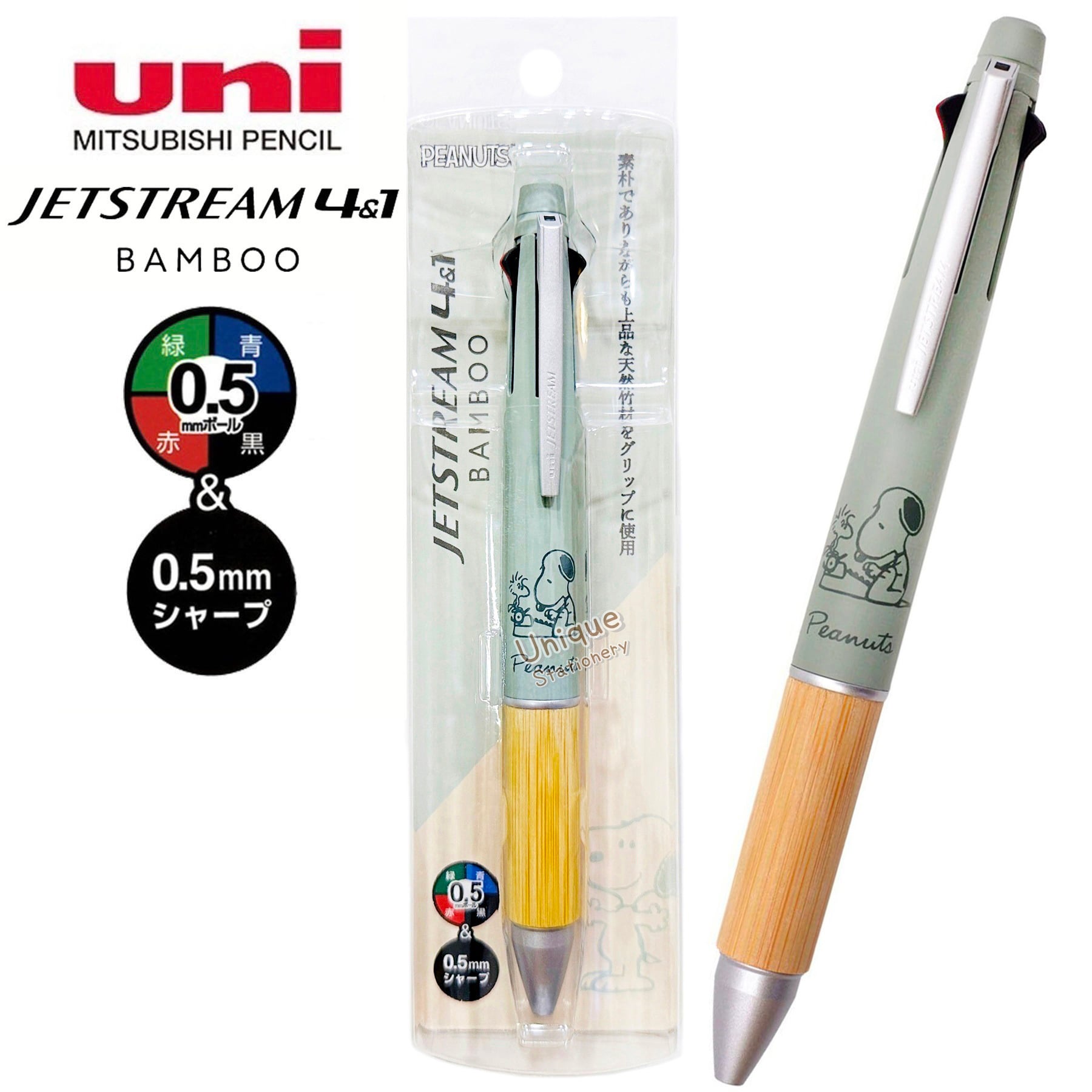 現貨|Snoopy 日本製 uni Jetstream 4&1 Bamboo 多功能 5用筆 0.5mm 4色原子筆 + 0.5mm 鉛芯筆 (304482)