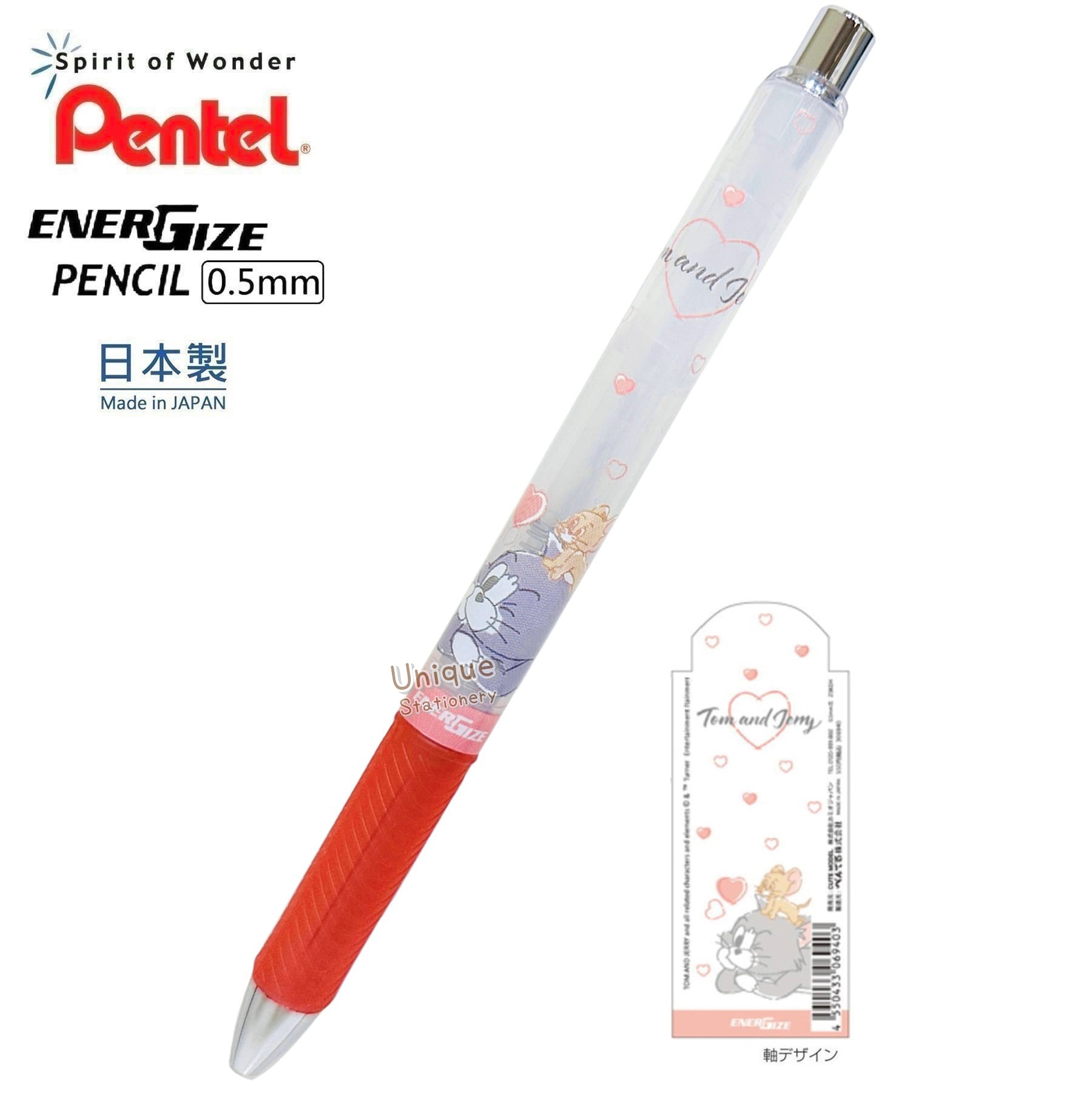 Tom and Jerry 湯姆與謝利 日本製 Pentel EnerGize 0.5mm 鉛芯筆 (306940) 尺寸:146mm (長) x 11mm (值徑) 材質:樹脂 重量:約12.6g 日本進口,日本製造 Made in Japan