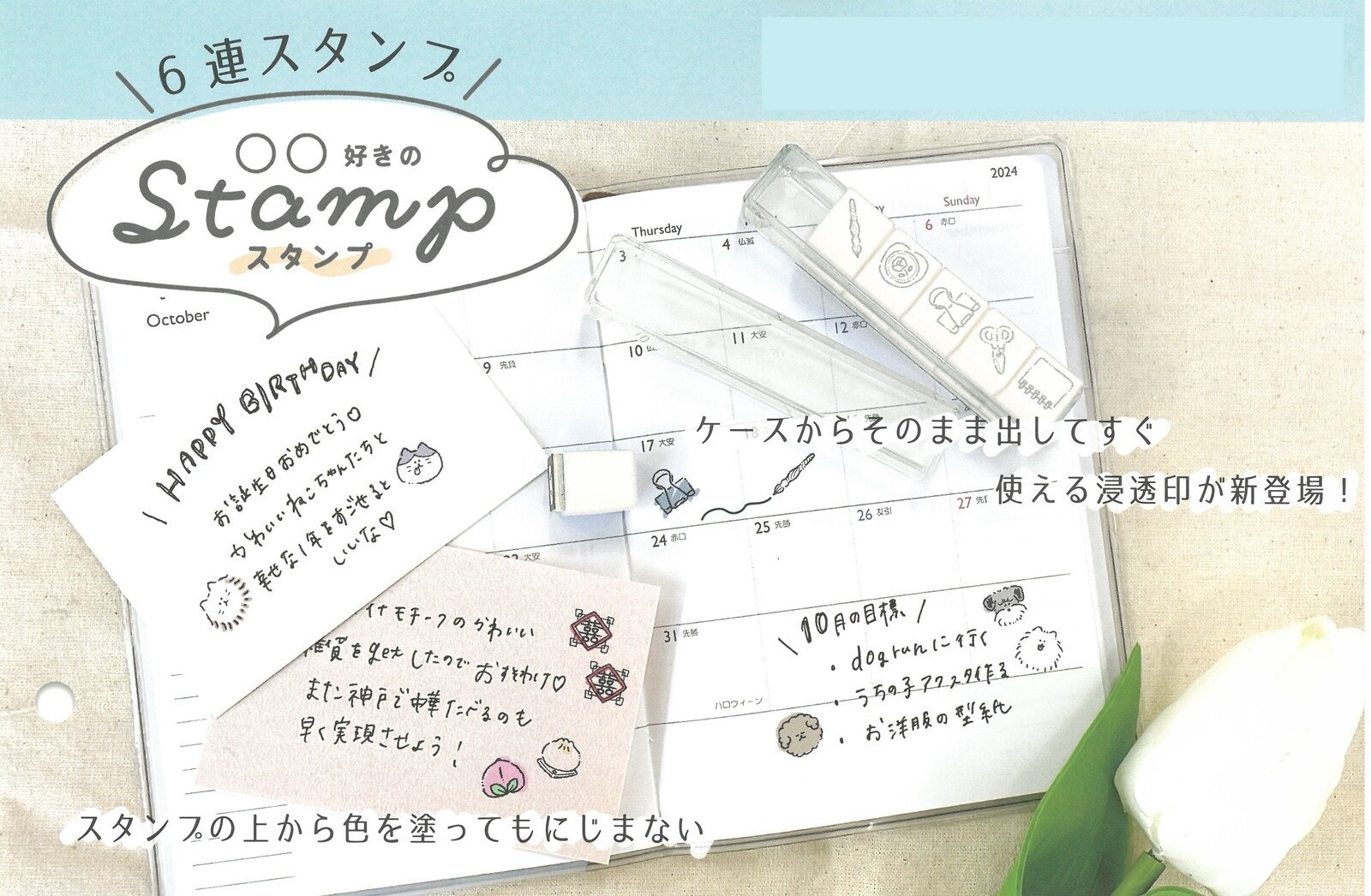 貓貓 日版 6連 印章 套裝 (223561) 附有透明的收納盒,方便整理。 由於它是穿透式印章,因此不需要印台。 即使你在印出來的圖案上塗上顏色,它也不會化! 用於裝飾筆記本、記事本、信件等。 套裝容內:印章 x 6個、收納盒 x 1個 印章收納盒尺寸:約 W18 x H22 x D85mm 包裝尺寸:約 W65 x H130 x D24mm 墨水顏色:黑色 材質:ABS、PS 連包裝重量:約 27.1g 日本進口 Made in China