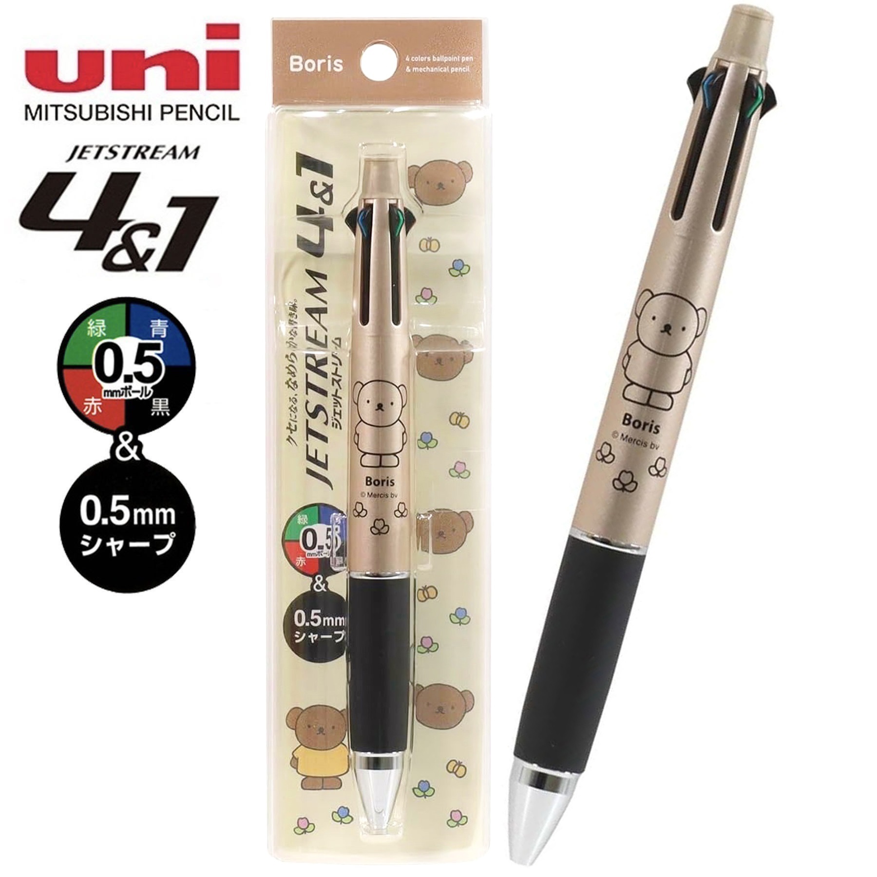 Boris Miffy uni Jetstream 4&1 日本製 多功能 5用筆 0.5mm 4色原子筆 + 0.5mm 鉛芯筆 (EB354GL) 墨水顏色:0.5mm 黑色,紅色,藍色,綠色 鉛芯筆:0.5mm 尺寸: 150mm (長) x 15mm (直徑) 材質:PC, Silicon 日本直送,日本製造 Made in Japan