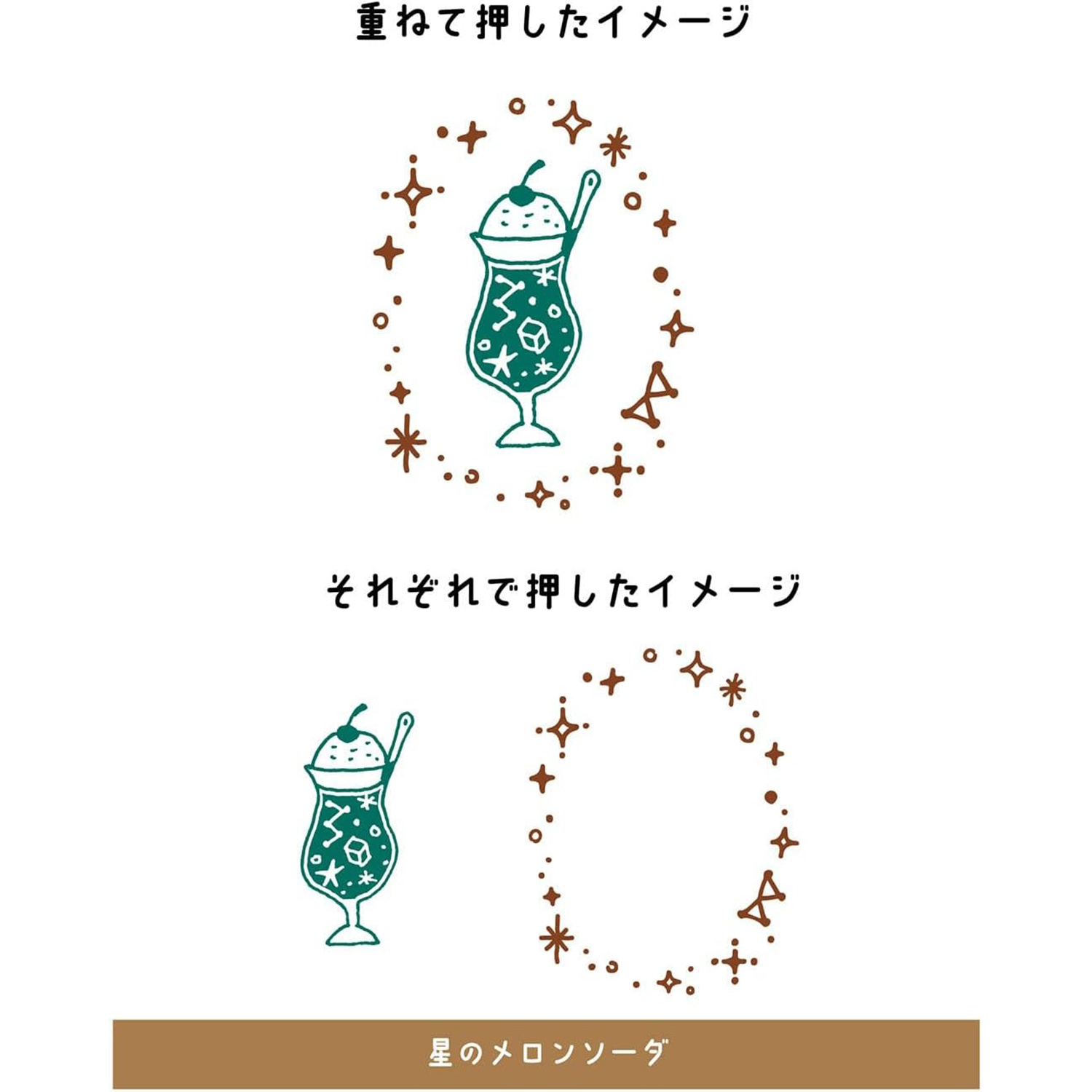 Kutsuwa 日版 Hancoco Layer Stamp 雙色雙圖案 印章 (星星 + 哈密瓜汽水 DE013F)