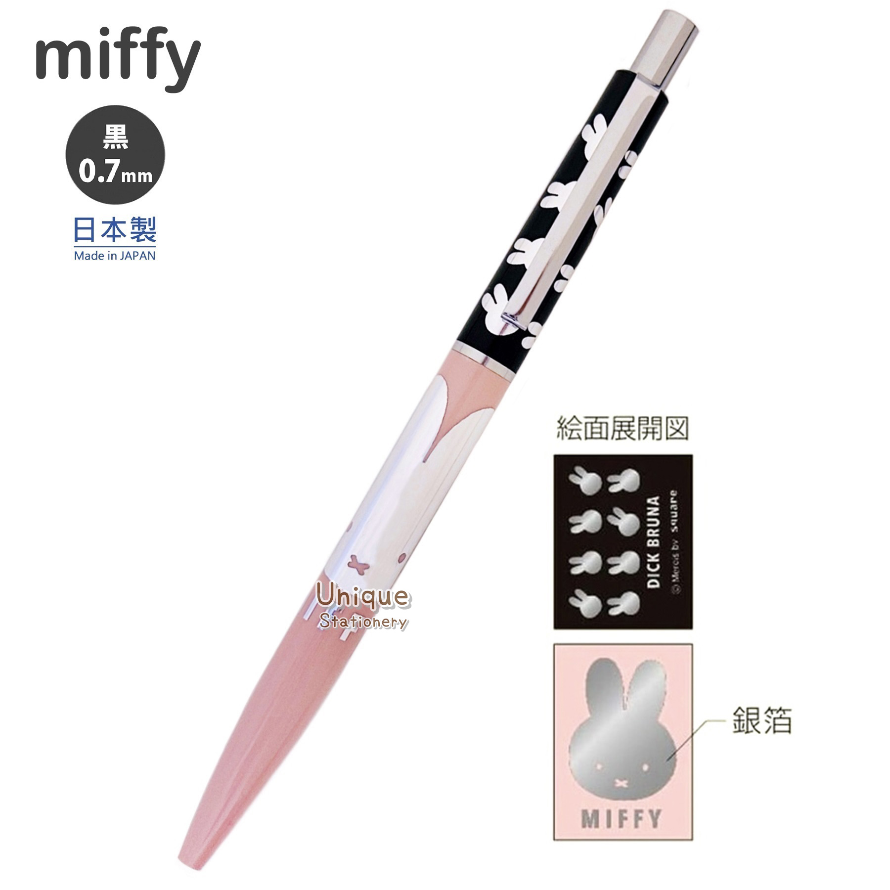 Miffy 日本製 銀箔圖案 0.7mm 黑色 原子筆 (BN24-21)