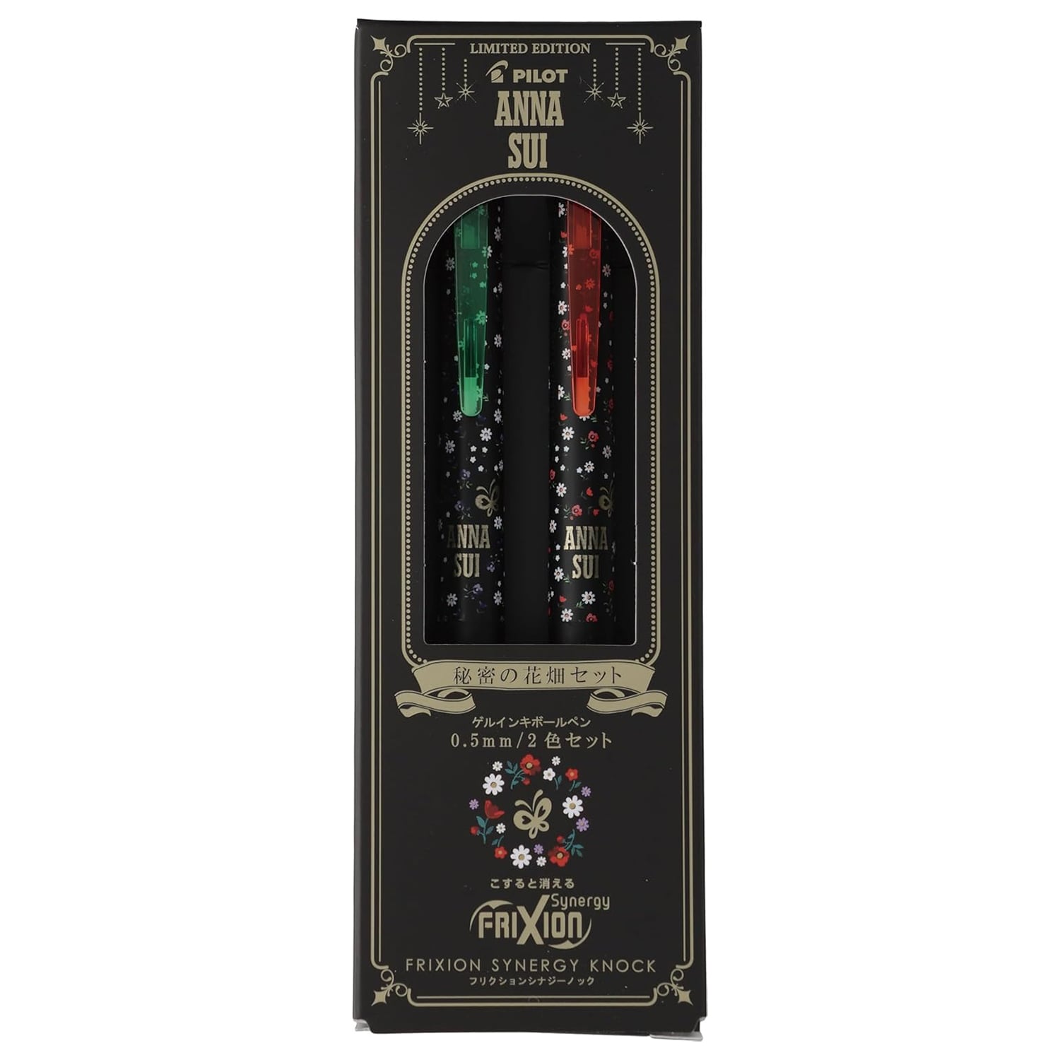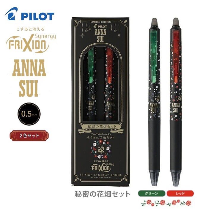 現貨|【2色套裝】限定 Pilot x ANNA SUI 日本製 Frixion Synergy Knock 0.5mm 可擦原子筆 2色套裝 綠色+紅色 (秘密花園 LFSK-15AS25-H2C)