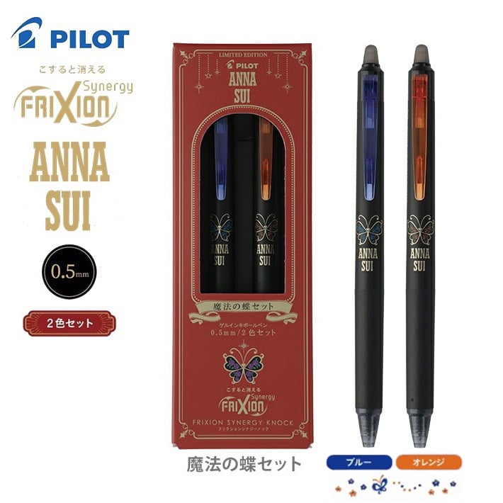 現貨|【2色套裝】限定 Pilot x ANNA SUI 日本製 Frixion Synergy Knock 0.5mm 可擦原子筆 2色套裝 藍色+橙色 (魔法蝴蝶 LFSK-15AS25-M2C)
