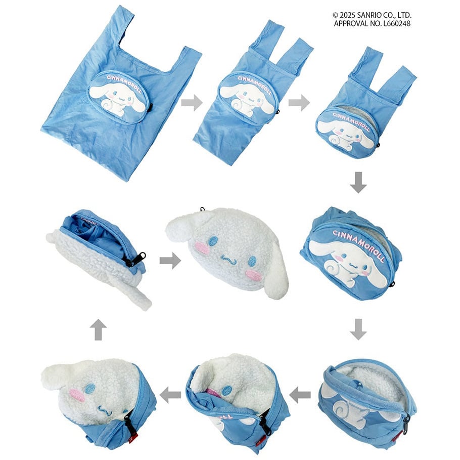 ROOTOTE x Sanrio Cinnamoroll 玉桂狗 日版 2-Way 環保袋 附肩帶 (846504) ▪️ ROOTOTE 與 Sanrio 聯名合作 ▪️ 將口袋翻過來,將包包翻過來收納,即可變身為毛茸茸的 Cinnamoroll 臉 ▪️ 附可拆卸可調式肩帶 ▪️ 環保袋可以兩用,可以手挽或加上肩帶後可以孭上膊 ▪️ 不使用環保袋時可以摺疊收納 環保袋尺寸:約 W26cm x D9cm x H28cm (尺寸不含手柄) 收納後尺寸:約 W14cm x D4cm x H12cm (尺寸不含耳朵) 肩帶長度:約 46-85cm 材質:聚酯纖維 重量:約 162g 日本進口 Made in China