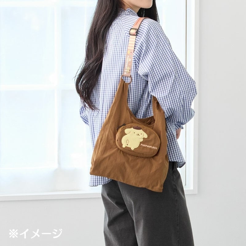 ROOTOTE x Sanrio Pompompurin 布甸狗 日版 2-Way 環保袋 附肩帶 (846503) ▪️ ROOTOTE 與 Sanrio 聯名合作 ▪️ 將口袋翻過來,將包包翻過來收納,即可變身為毛茸茸的 Pompompurin 臉 ▪️ 附可拆卸可調式肩帶 ▪️ 環保袋可以兩用,可以手挽或加上肩帶後可以孭上膊 ▪️ 不使用環保袋時可以摺疊收納 環保袋尺寸:約 W26cm x D9cm x H28cm (尺寸不含手柄) 收納後尺寸:約 W14cm x D4cm x H12cm (尺寸不含耳朵) 肩帶長度:約 46-85cm 材質:聚酯纖維 重量:約 162g 日本進口 Made in China