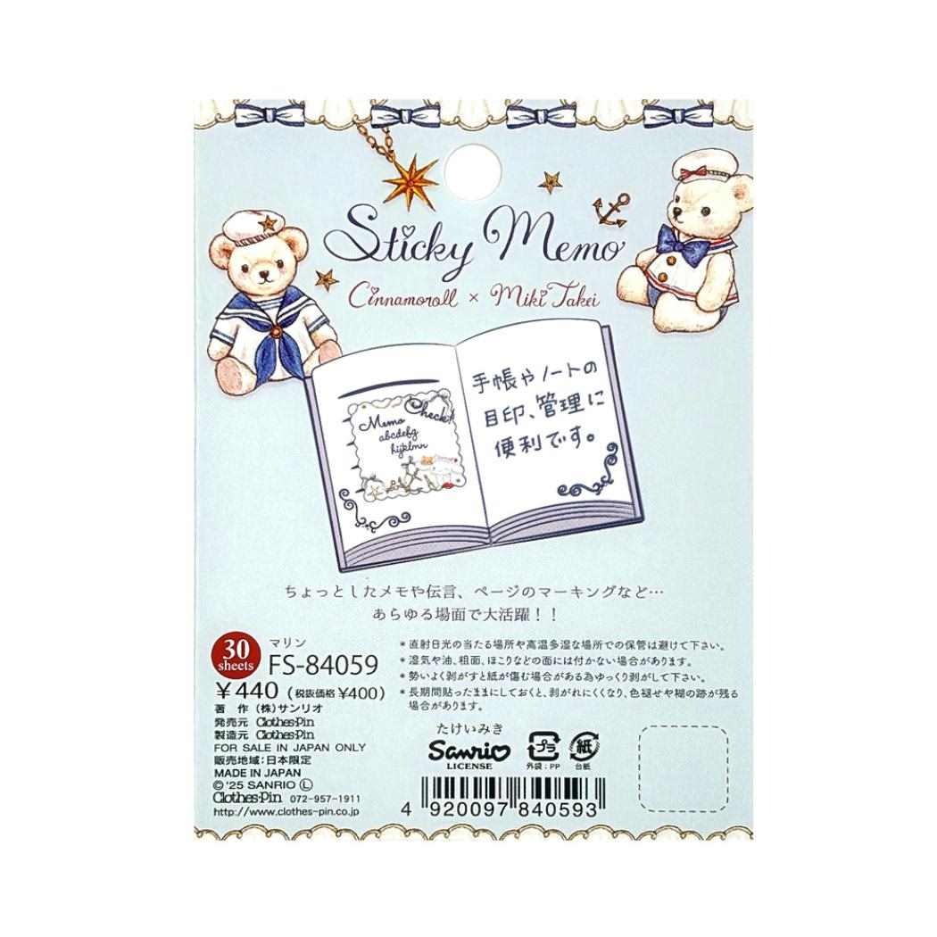 現貨|Sanrio Cinnamoroll 玉桂狗 x Miki Takei Clothes-Pin 日本製 便利貼 Sticky Memo (FS-84059)