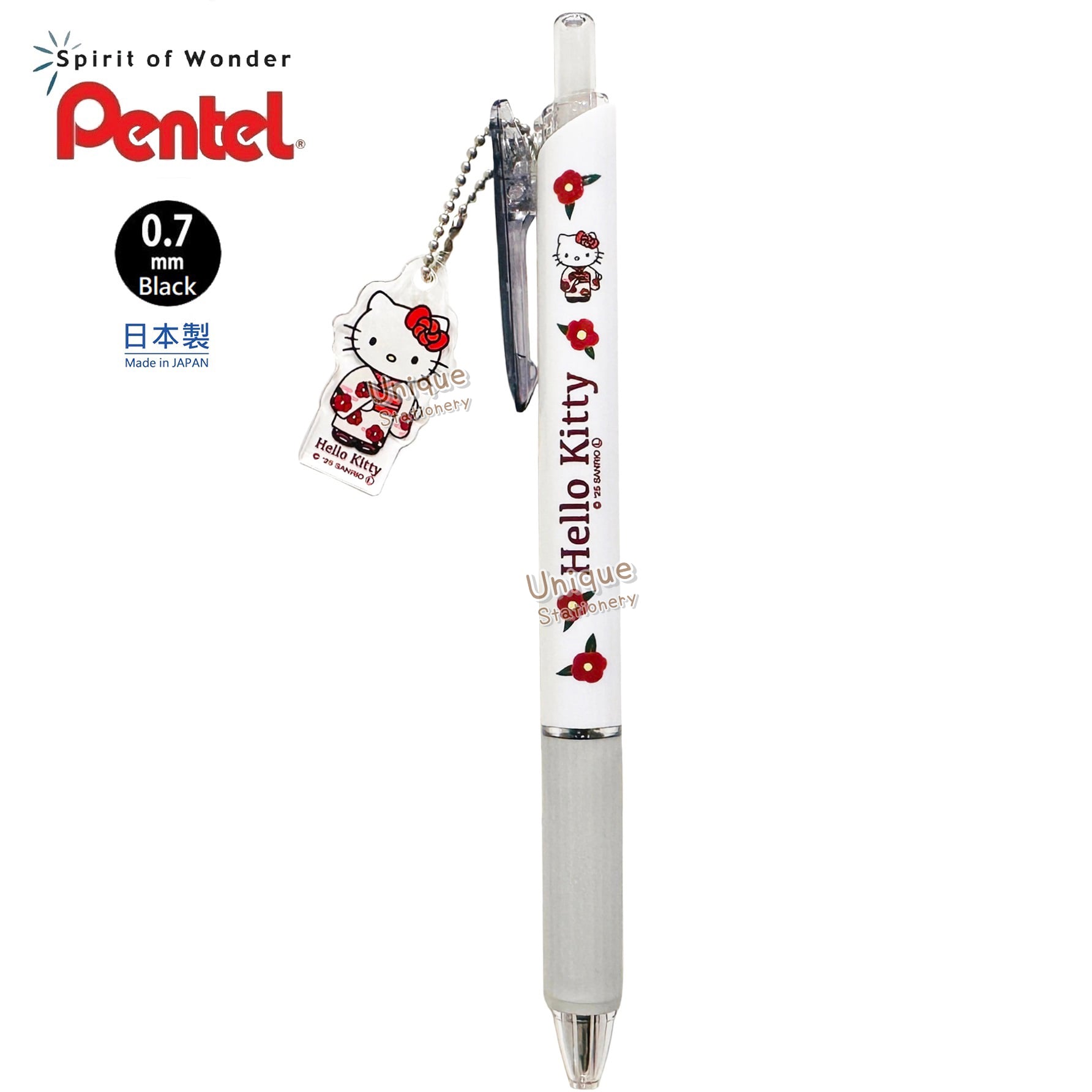 Sanrio Hello Kitty 和服 椿花圖案 日本製 Pentel 0.7mm 黑色原子筆 (960681) 能順暢書寫,設有彈力筆夾,可隨手夾於記事簿上 墨水顏色:0.7mm 黑色 尺寸:149mm (長) x 11mm (值徑) 重量:約 13g 連包裝重量:約 19g 用完可換替芯 (Pentel BLK7-A 芯) 日本進口,日本製造 Made in Japan