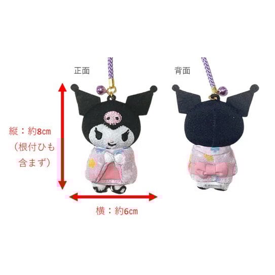 Sanrio Kuromi 日版 和服造型 掛飾 (583226) 尺寸:約 W6cm x D3.5cm x H8cm 材質:和服布 商品重量:約 10g ** 只適合6歲以上 日本進口 Made in China
