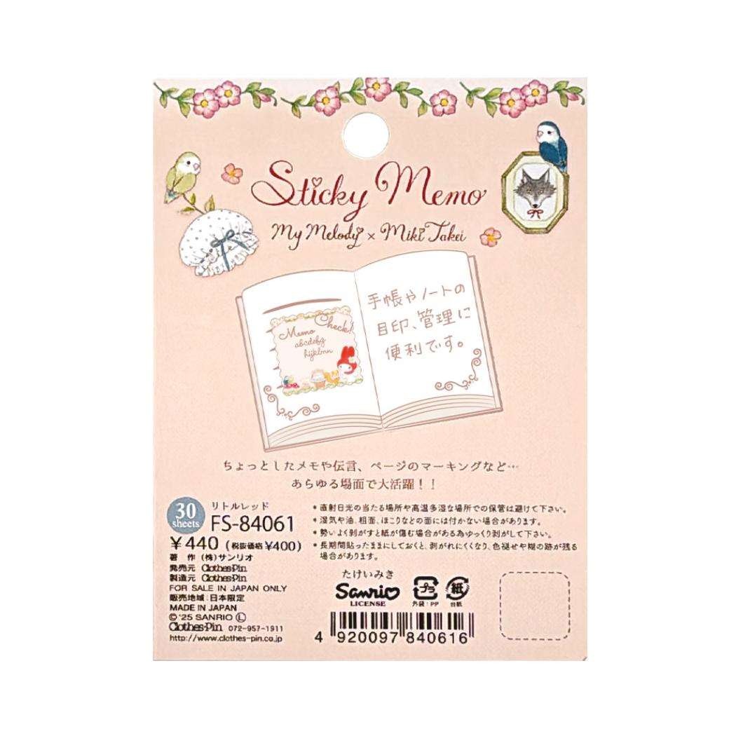 現貨|Sanrio My Melody x Miki Takei Clothes-Pin 日本製 便利貼 Sticky Memo (FS-84061)