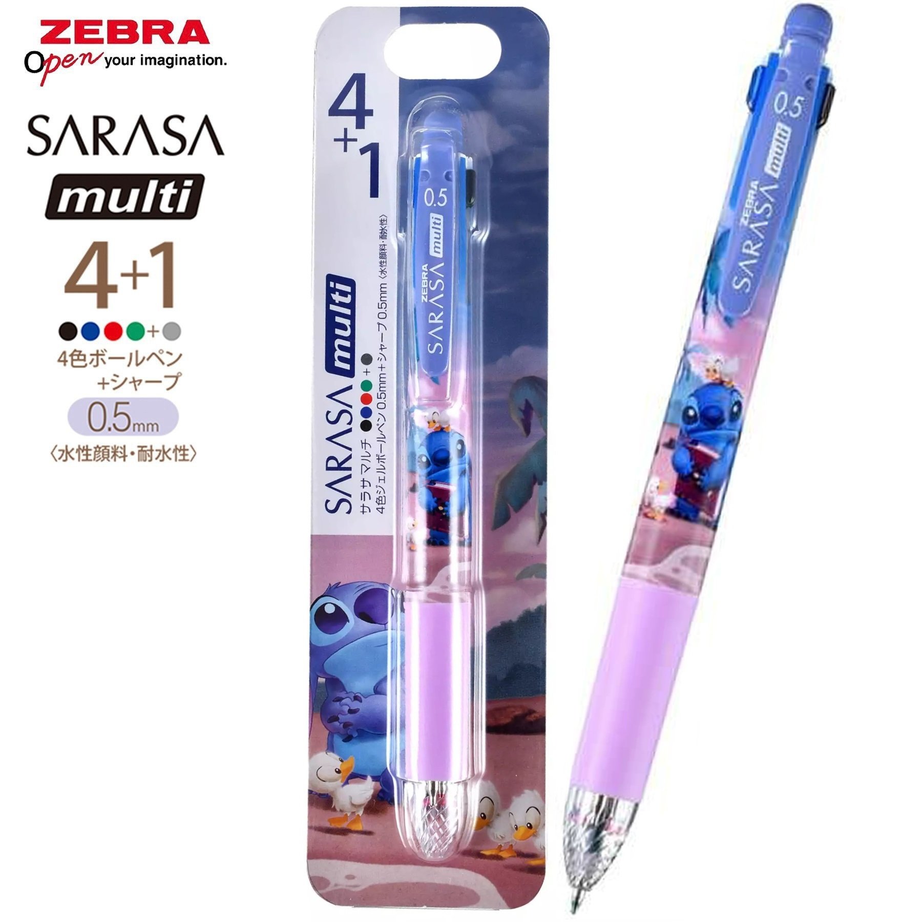 現貨|【日本 Disney Store 限定】Stitch 史迪仔 日本製 Zebra SARASA multi 4+1 多功能5用筆 4色啫喱筆+鉛芯筆 070752