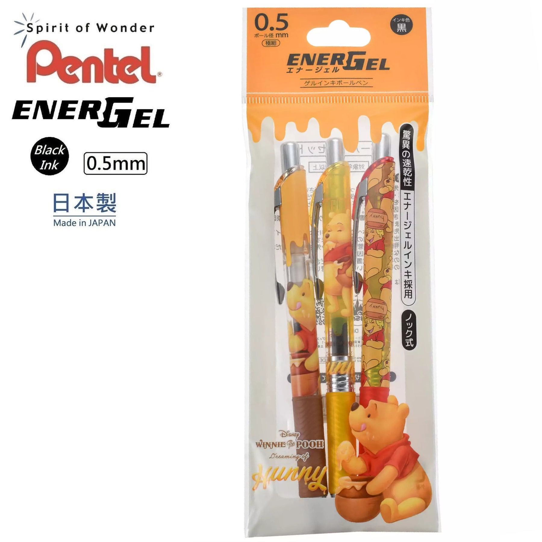 現貨|【日本 Disney Store 限定】一套三枝 Winnie the Pooh 小熊維尼 日本製 Pentel EnerGel 0.5mm 黑色 啫喱筆 070592